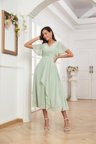 • Chiffon bridesmaid dresses for women short, tea length wedding guest dress . Features with short sleeve, tea length,v neck, flutter short sleeve,corset, a-line style, elegant enough to wear in any special occasion