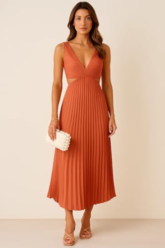 More information about Dessiny Women’s Satin Pleated Bridesmaid Dresses Long 2025 V Neck Maxi Cocktail Party Dress DE519