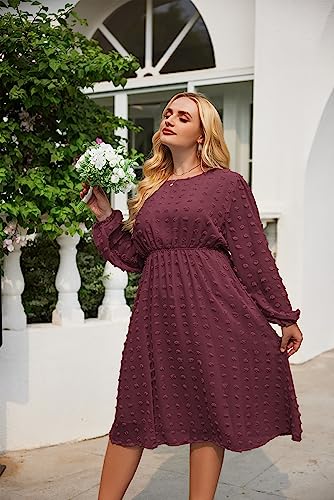 IN'VOLAND Women's Plus Size Swiss Dot Long Sleeve Chiffon Dress Flowy High Waist A Line Ruffle Babydoll Midi Dresses 16W-24W 2