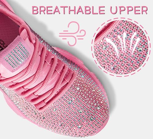 LUCKY STEP Girls Rhinestone Slip On Sneakers Kids Sparkly Lightweight Tennis School Knit Jelly Sole Glitter Walking Shoes Toddler 7