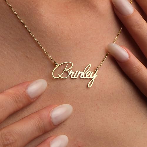 More information about 14k Solid Gold Name Necklace Personalized, Custom Script Nameplate Necklace, Dainty Custom Name Necklace For Women, Nameplate Customized Pendant, Gift for Her, 14K Solid Gold and Gold Plated Options