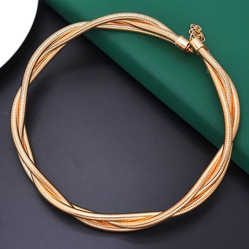 HOT ! Chunky Gold Statement Choker Neckalce for Women Layered Snakebone Chain Collar Necklace Twist Wrap Stainless Steel Choker Punk Aesthetic Jewelry Gifts