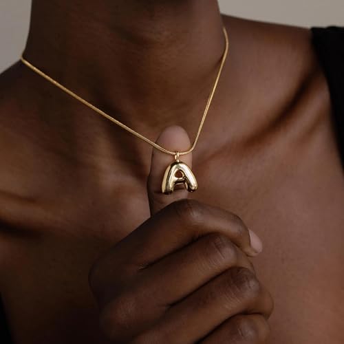 • Bubble Letter Necklace ✧ Add a fun, personalized touch to your summer necklace stack with our bubble letter necklace for women! This personalized pendant necklace is available in a vibrant 18K gold finish. Featuring a 14.5mm initial pendant, it is complemented by an adjustable 16–18-inch snake chain.