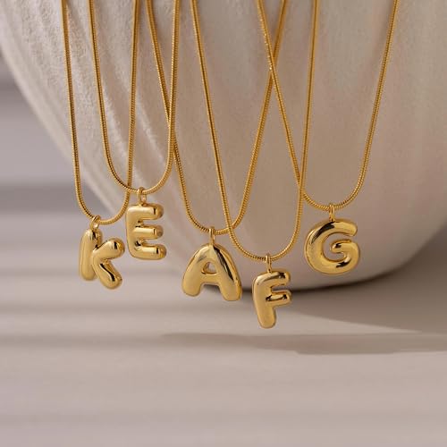 CAITLYNMINIMALIST 18K Gold Plated Bubble Balloon Initial Letter Snake Chain Stacking Personalized Necklace 1