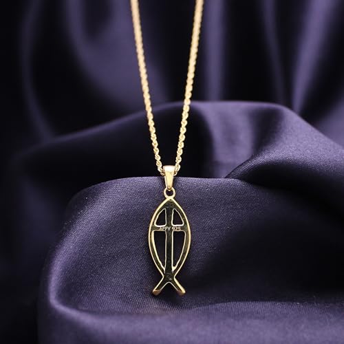 AFFY Cross Pendant Necklace for Women, 14K Gold Plated 925 Sterling Silver with Christian Fish Charm, Religious Faith Jewelry Gift with 18" Chain 6