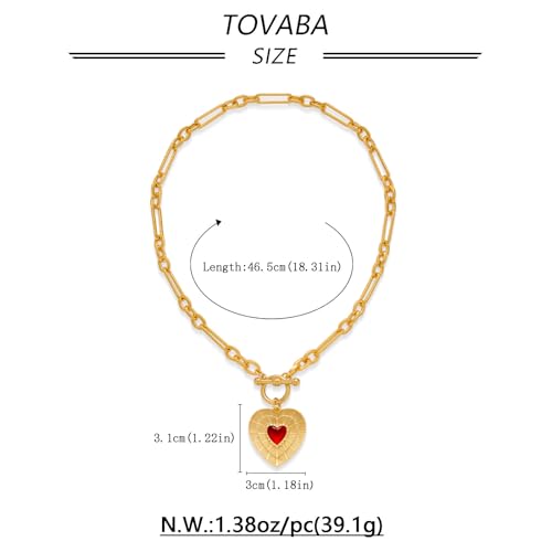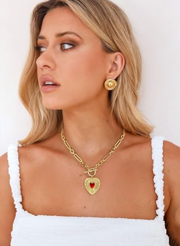 • Chunky Heart Necklace - TOVABA heart pendant necklace featuring a large heart pendant adorned with a radiant rising sun motif for added sparkle. What's in the centerpiece? A heart-shaped red stone adds a vintage touch to the gold chunky necklace, perfect for your vintage look.