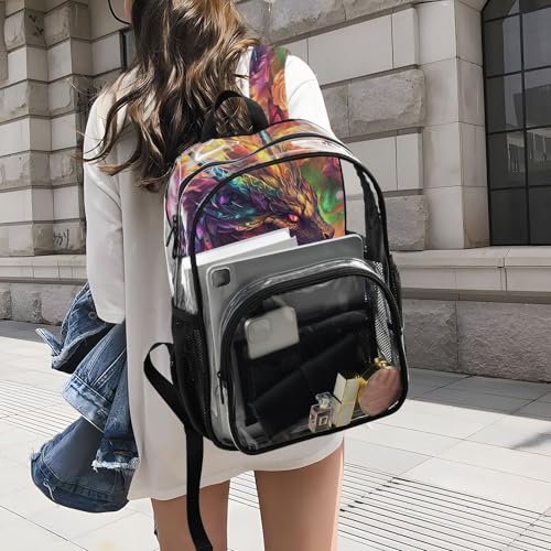 Clear Backpack for School Dragon Surrounded Roses Transparent Bookbag for Girls See Through PVC Boy Backpacks