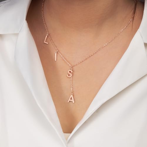 AILIN Custom Lariat Necklace for Women 925 Sterling Silver/Stainless Steel 18K Gold Plated Personalized 3-9 Letters Initial Necklace for Her Y Shape Name Necklaces Birthday Christmas Gifts For Mother 5
