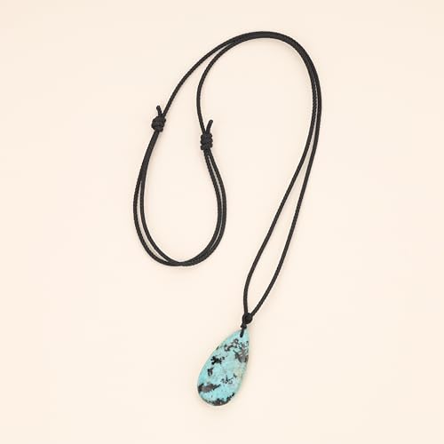 COAI Adjustable Nylon Cord Crystal Necklace for Men Women, Teardrop Pendant African Turquoise Necklace for Men Women 1