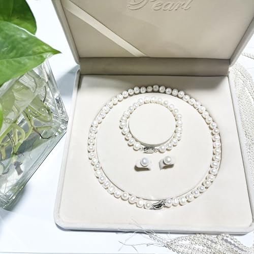 Freshwater Cultured Pearl Necklace and Earring Set Genuine Pearl Jewelry Set Includes Stunning Bracelet and Stud Earrings Real Pearl Necklace Set for Women Valentine's Day Mother's Day Birthday Presents 7