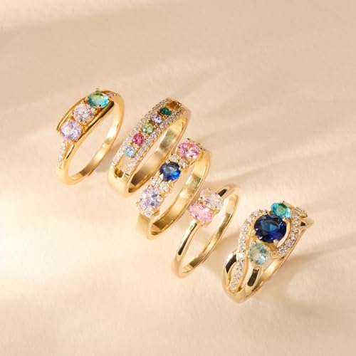 • Custom Birthstone Rings for Mom: Add your own touch to the personalized birthstone jewelry by choosing four birthday cz stones that will be placed in the sterling silver ring. Our custom 4 birthstone ring eternity band is a stunning piece that will commemorate the birthdays of you and your family.