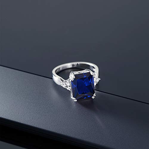 Gem Stone King 5-10 Cttw Gemstone Birthstone Engagement Ring for Women | 925 Sterling Silver | 12X10MM Emerald Cut | Wedding Anniversary Promise Ring | Available In Size 5, 6, 7, 8, 9 6