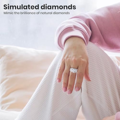 • THREE ROW CUBIC ZIRCONIA RING - The three rows of CZ diamonds on this gorgeous cz ring or cubic zirconia rings for women create a sense of opulence and extravagance, making you feel like royalty every time you wear it.