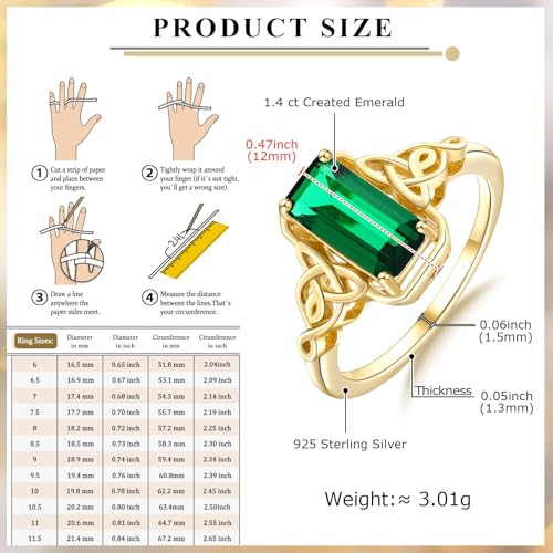 Celtic Knot Ring Sterling Silver 14K Yellow Gold Plated Lucky Trinity Emerald Cut Engagement Rings Amethyst/Peridot/Aquamarine/Ruby/Blue Topaz/Green Emerald/Sapphire Solitaire Signet Ring for Women 5