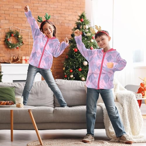 GuoChe Plaid Purple Pink Blue Boy Hooded Fleece Jacket