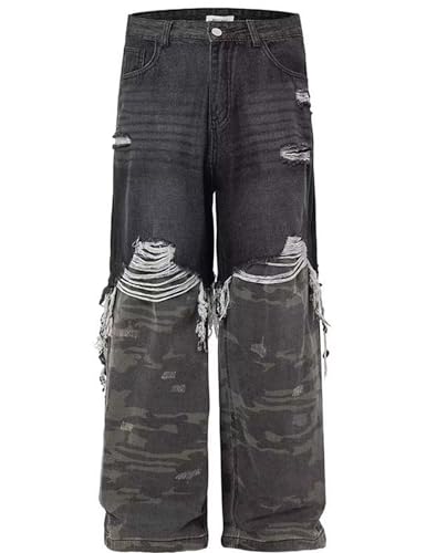 • 【Size】: S/ M/ L / XL.All matched, Y2k camo ripped jeans graphic baggy jeans baggy camo pants wide leg denim pants men, baggy camo cargo pants for men, classic basic versatile.