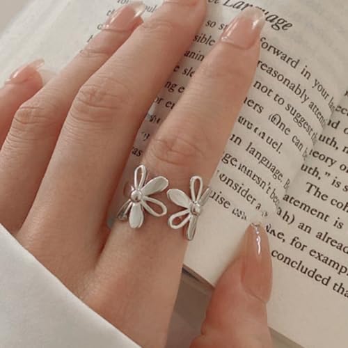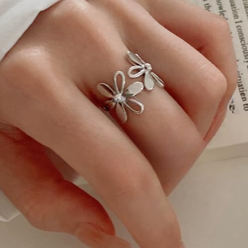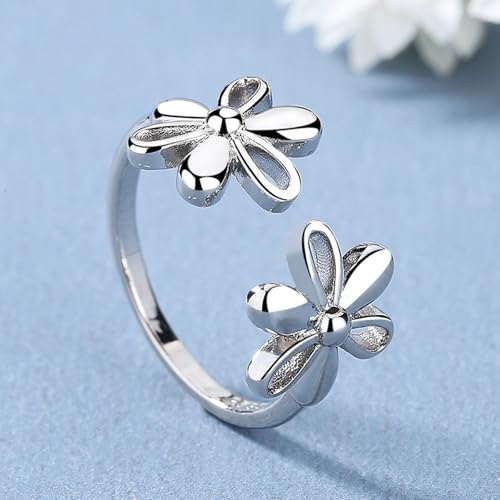 HOT ! Daisy Flower 925 Sterling Silver Plated Adjustable Ring for Women | Expandable Wedding Statement Ring | Comfortable Dainty Engagement and Birthday Jewelry