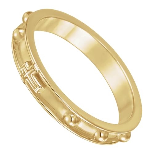 14k Yellow Gold 3.20mm Rosary Ring – Faith-Inspired Elegant Jewelry for Men & Women, Ideal Religious Accessory, Unisex Prayer Ring 6