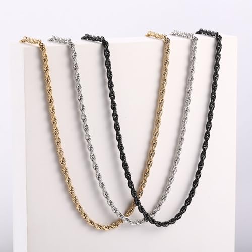 316L Stainless Steel Twist Chain for Men Women 2.5mm/3mm/4mm Wide Braided Twist Chain Necklace Silver/Gold/Black Twist Rope Chain Jewelry for Men Women 16-30 Inches Braided Twist Rope Chain 6