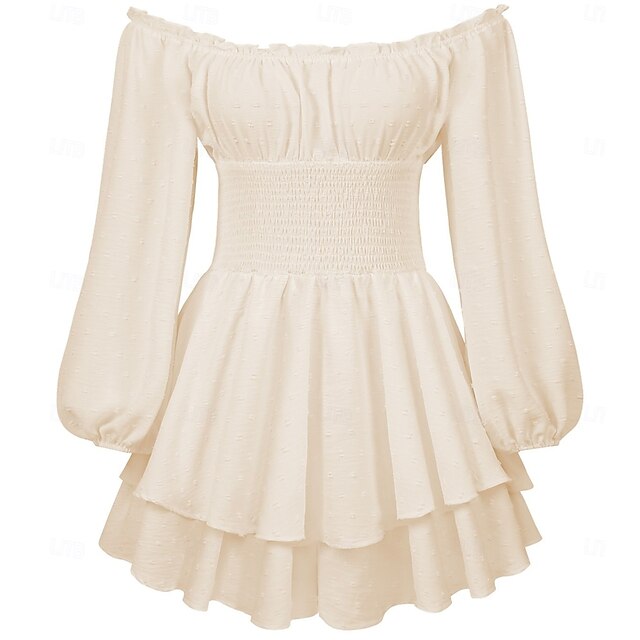 HOT ! Retro Vintage Medieval Renaissance Mini Dress Flare Dress Puff Sleeve Elven Off Shoulder Regency Inspired Solid Color Fancy Dress Women's Fantasy Vacation Casual Daily LARP Adults' Dress Spring