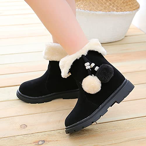 Girls Winter Boots Kids Casual Fleece Lined Outdoor Snow Boots Cute Mid Calf Princess Boot heated Shoes with Pom Poms