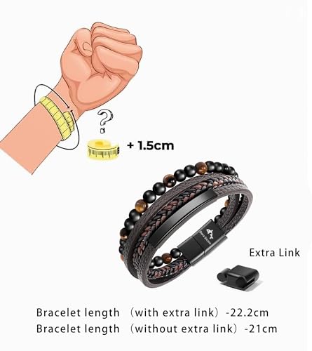 Leather Bracelet for Men, Adjustable Mens Leather Bracelet with Stainless Steel Magnetic Clasp Braided Mens Bracelets 7