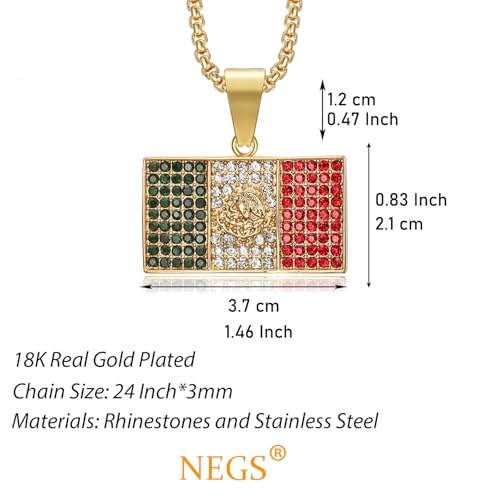 18K Gold Plated Mexico Flag Pendant Punk Rock Stainless Steel Necklace, 24 Inch Chain Hip Hop Jewelry Gift for Men Women 5