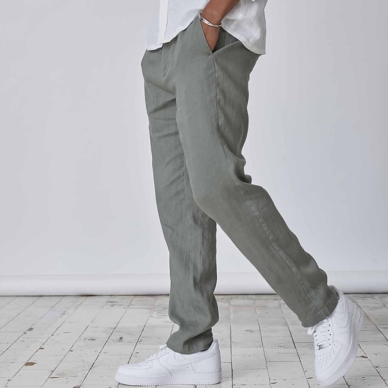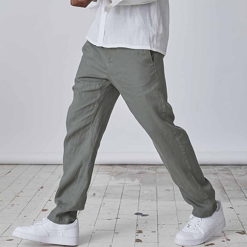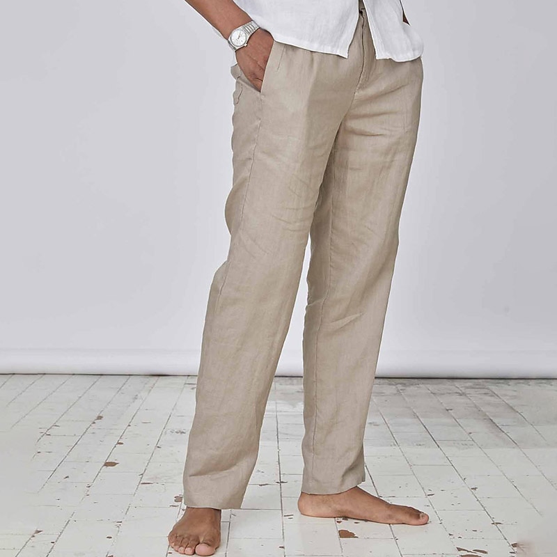 More information about Men's Linen Pants Trousers Summer Pants Pocket Plain Comfort Breathable Daily Casual Black White