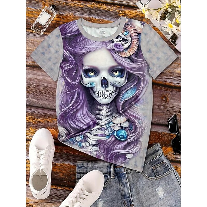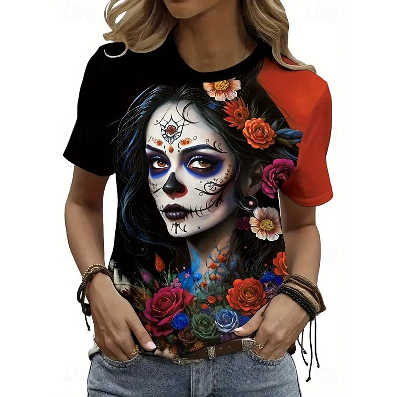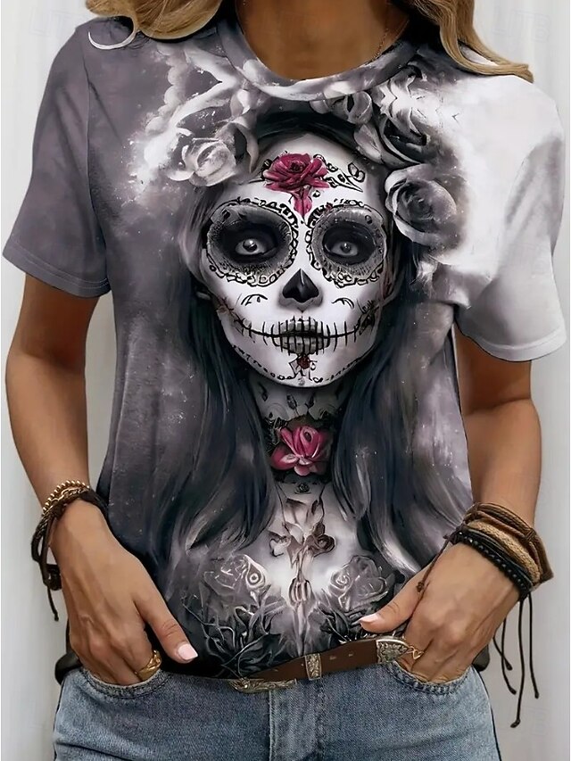 More information about Halloween Women's T Shirt Skulls Floral Graphic Vintage Stylish Classic Short Sleeve Crew Neck Round Neck Regular Tops Daily Weekend Print Black Purple Gray Summer Fall