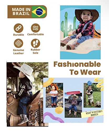 King USA Texas Real leather Western Boots - Infant Toddler Boys Girls Cowboy Cowgirl Zipper Boots with Rubber Soles 5