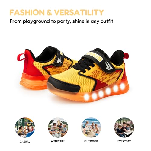 • Suitable for Any Occasion: These kids light up sneakers are perfect for daily wear, school, sports, outdoor activities, travel, or vacation. Toddler shoes with lights dazzle in 8 fashion colors styles for birthday and festival surprises