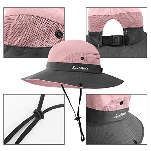 LCZTN Kids Ponytail Sun Hat Wide Brim UV Protection for Girls Beach Bucket Cap 7