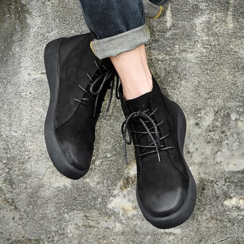 Mens Mid-Top Lace-Up Leather Chukka Ankle Boots Casual Comfortable Round Toe Non-Slip Shoes for Walking Outdoor Hiking 6