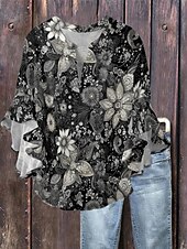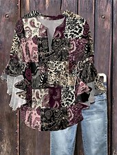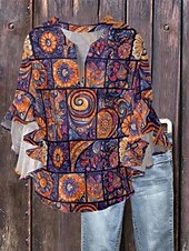 More information about Women's Blouse Paisley Retro Vintage Ethnic 3/4 Length Sleeve V Neck Regular Tops Daily Holiday Ruffle Print Black Wine Purple Summer