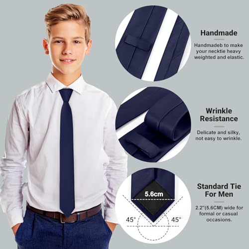 • This tie pocket handkerchief set suitable for teenagers aged 12-16 is perfect for graduation ceremonies, weddings, school photos, and other occasions. Tie measures 52.76 inches (134 cm) in length and 2.2 inches (5.6cm) in width, while the pocket square 7.8in(20cm) It is made of soft satin and meticulously handcrafted, blending ease of wear with elegant style.