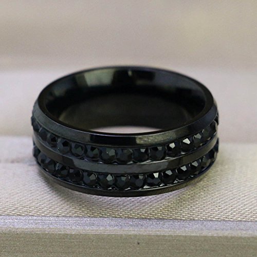 Couple Ring Bridal Set His Hers Black Gold Plated CZ Stainless Steel Wedding Ring Band Set 7