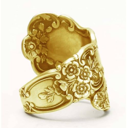 Vintage Antique Color Women Rings Graceful Engraved Flower Pattern Retro Party Jewelry 4