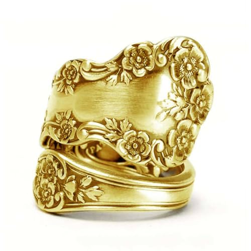 Vintage Antique Color Women Rings Graceful Engraved Flower Pattern Retro Party Jewelry 7
