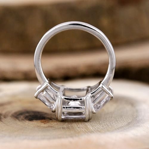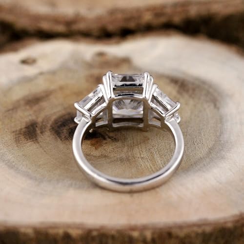 Radiant Cut Diamond 3 Stone Engagement Ring Side Stone Trapezoids and Radiant Wedding Ring 14K White Gold Plated Gifted Ring.size 3-12 (USA) 5