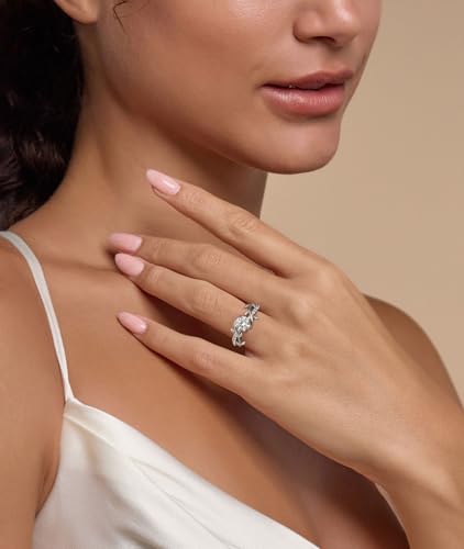 Moissanite Leaf Engagement Ring 18K White Gold Plated 925 Sterling Silver Moissanite Twisted Promise Ring Size 7 3