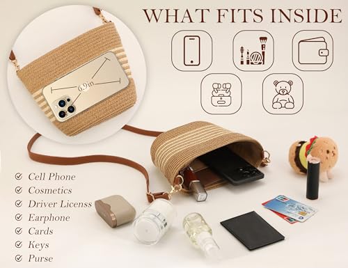 • [Compact & Practical Design]: Lightweight and functional, this small straw purse fits your phone, keys, cards, lipstick, or sunglasses with ease. Ideal as a small beach bag or casual outing companion, it blends chic design with everyday practicality