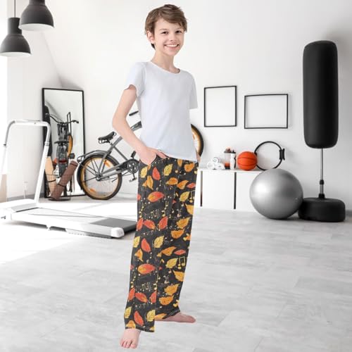Boy's Pants Autumn Leaf Jogger Pants Elastic Waist Long Bottoms Trousers with Pockets 6-14 Years 6
