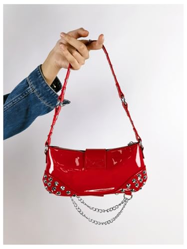 • Features: Chain detail, studded detail, zipper closure, top handle, buckle, y2k clutch purses for women