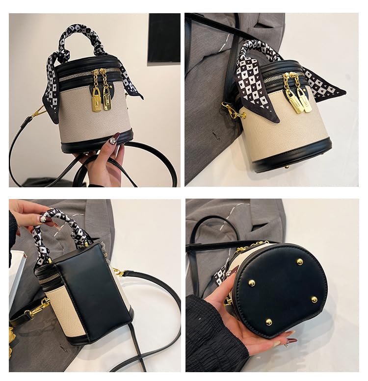 • Elevate your style with this elegant black or brown retro bucket bag, crafted from high-quality PU leather and canvas for a durable yet chic finish. Its cylindrical design and woven bucket bag aesthetic make it a standout top handle purse for any occasion