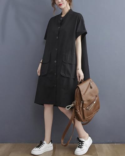 • Features: Short sleeve, button down, v-neck, length to knee, flowy hem, oversize, slim and two large pockets. Solid color make it simple. The buttons match the color of the clothing.