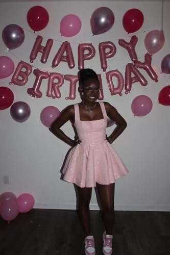 Sparkly Sequin Homecoming Dresses Short with Bow Square Neck A-Line Prom Cocktail Party Gown for Women 5