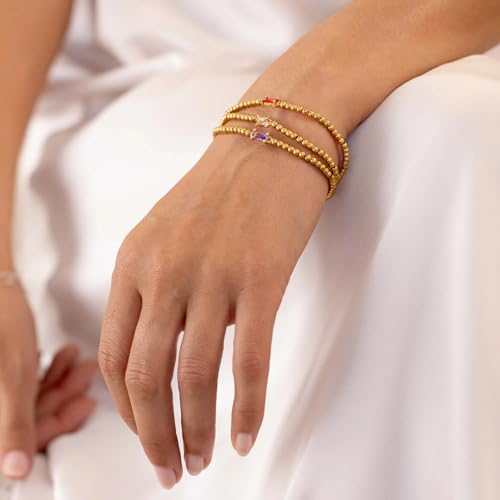 • Elegant Gold Design: Add brilliance to your style with this refined gold bracelet, featuring shimmering 3mm beads and a dazzling birthstone centerpiece. A standout among women's jewelry, it’s expertly crafted from stainless steel and finished in luxurious 18k PVD gold for lasting shine and beauty you’ll adore wearing daily.