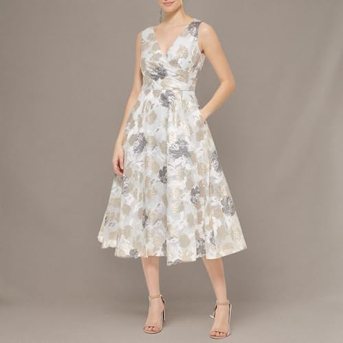• Elegant Features: Floral organza, midi style, sleeveless, formal event, v-neck dress