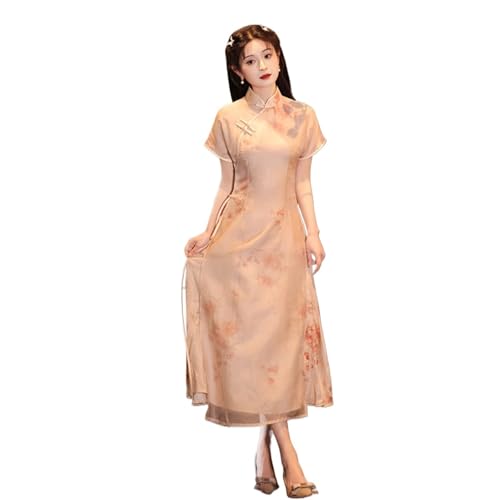HOT ! Summer Wearing Cheongsam Dresses for Women Chinese Short Sleeved Long Skirt Dress Retro Women's Classical Cheongsam Ao Dai Dress(Large)