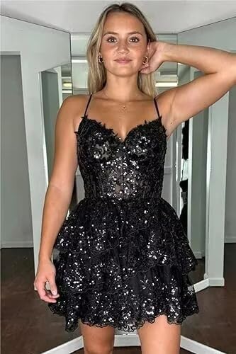 • Features: sparkly sequin lace appliques homecoming dress, tulle and glitter lace appliques, sweetheart, tiered, layered, a line, lace up back, short homecoming dresses for teens, above knee length prom dress for juniors.